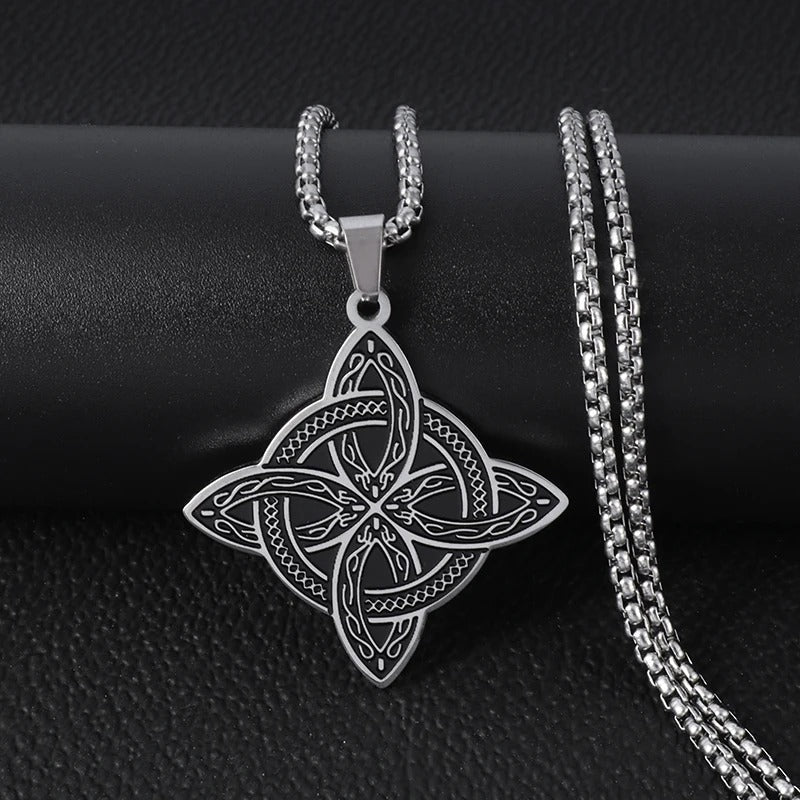 Lassen Sie sich von Ihrer inneren Mystik leiten und verleihen Sie Ihrer Garderobe einen Hauch von Magie mit unserer exquisiten Hexenknoten-Halskette. Dieses Statement-Stück fängt das komplizierte Design des Hexenknotens wunderschön ein - ein zeitloses Symbol für Schutz und Einigkeit. Die aus robustem Edelstahl gefertigte Halskette strahlt nicht nur urbane Raffinesse aus, sondern garantiert auch Langlebigkeit und ist damit der perfekte Begleiter für Ihre täglichen Abenteuer. Lassen Sie sich von dieser bezaubernden Halskette an Ihre innere Stärke und Ihren Schutz erinnern, während Sie die Reise des Lebens mit Anmut und Widerstandsfähigkeit meistern.