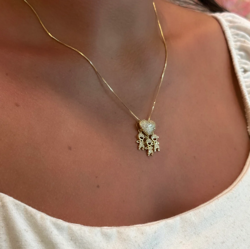 Hüllen Sie sich in die Wärme des Familienglücks mit diesem bezaubernden Schmuckstück, das flüchtigen Trends trotzt. Unsere Halskette mit Familienanhänger ist nicht nur eine Augenweide, sondern eine greifbare Manifestation der Liebe, die dazu bestimmt ist, ein geschätztes Erbstück für zukünftige Generationen zu werden. Gefertigt aus hochwertigen Materialien, versprechen Haltbarkeit und Beständigkeit eine lebenslange Bedeutung, so dass diese Halskette ein geliebtes Symbol der familiären Hingabe über die Jahrhunderte hinweg bleibt.