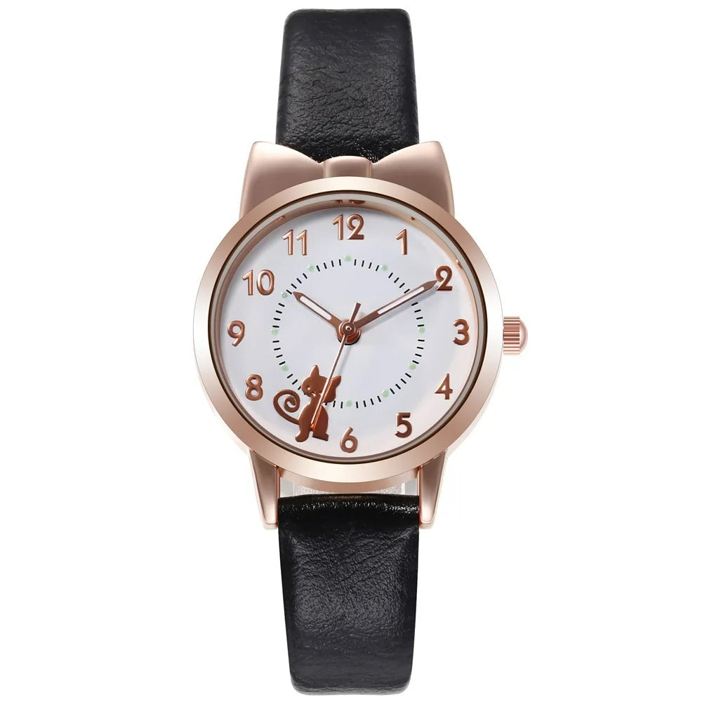 Schmücken Sie Ihr Handgelenk mit der Annika Lederuhr mit Katzenmuster, die ein schickes Lederarmband mit verspielten Katzenmotiven präsentiert. Perfekt für Katzenliebhaber und Modekenner, verbindet diese Uhr Verspieltheit mit Eleganz.