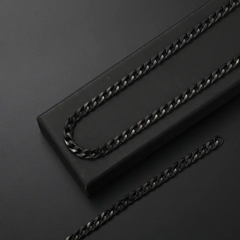 Setzen Sie ein gewagtes Statement und unterstreichen Sie Ihren Stil mit unserer Black Cuban Halskette. Jedes Glied wurde sorgfältig verarbeitet, um einen nahtlosen Übergang zu schaffen, der Ihre einzigartige Persönlichkeit unterstreicht. Die schlichte schwarze Farbe verleiht ihr einen Hauch von Schärfe und Vielseitigkeit und macht sie zu einem idealen Accessoire für legere und formelle Anlässe. Ganz gleich, ob Sie Ihren persönlichen Stil unterstreichen möchten oder auf der Suche nach einem durchdachten Geschenk sind, unsere schwarze kubanische Halskette wird Sie sicher beeindrucken.