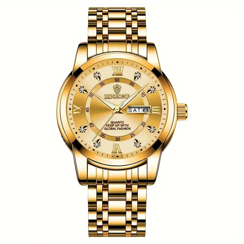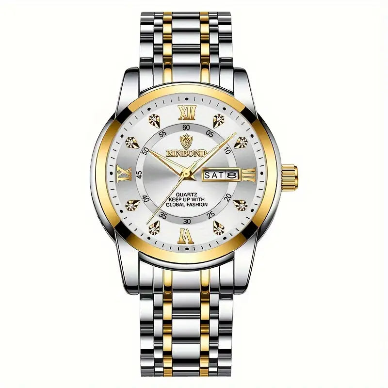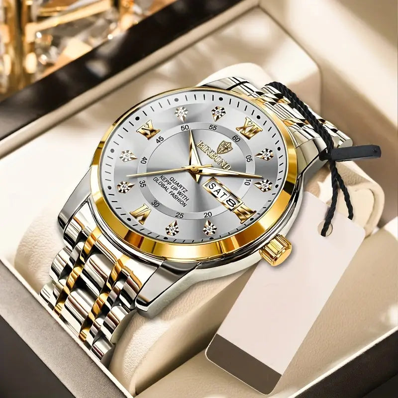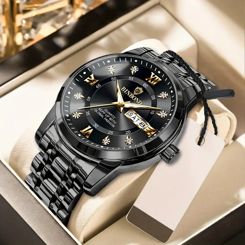 Die Binbond Luxus-Herrenuhr mit Doppelkalender besticht durch ihr elegantes Design, ihre hochwertige Verarbeitung und ihre präzise Zeitanzeige. Perfekt für einen raffinierten Look und besondere Anlässe.