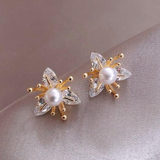 Die Blumenohrringe aus Kristall und Perlen begeistern mit ihrem funkelnden und eleganten Design.