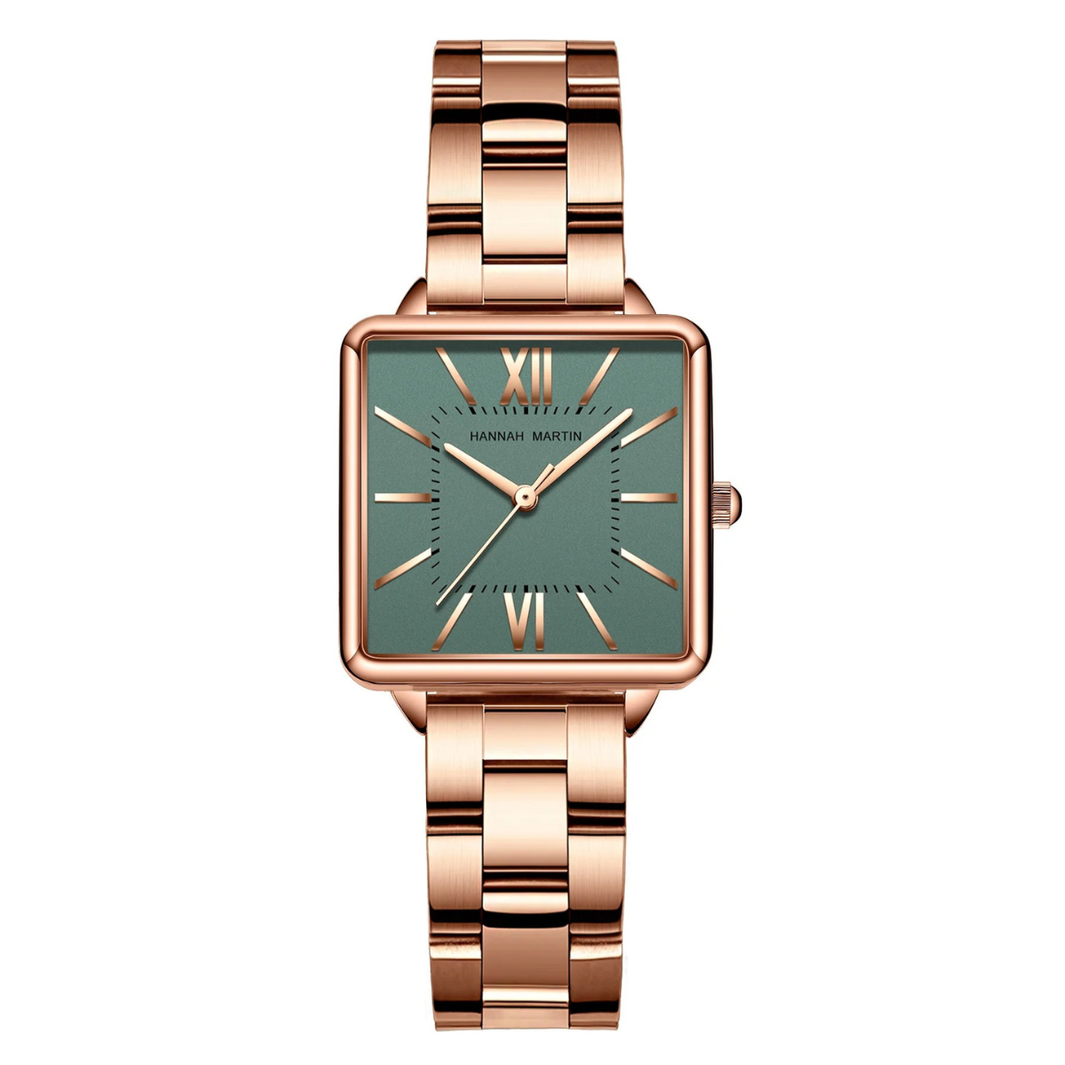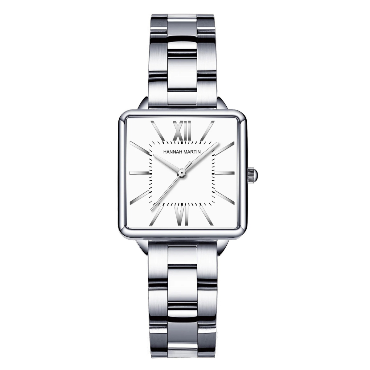 Die Helene - Stahluhr mit Quadratischem Zifferblatt ist ein atemberaubendes Stück, das klassische Eleganz mit einem modernen Twist verbindet. Diese Uhr verfügt über ein einzigartiges quadratisches Zifferblatt mit römischen Ziffern, das in ein luxuriöses, poliertes Gehäuse eingefasst ist.