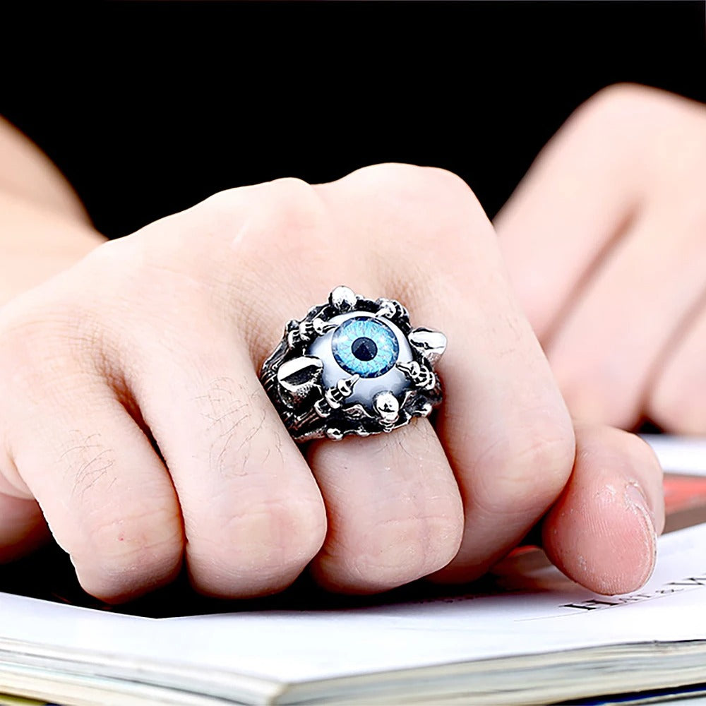 Tauchen Sie ein in die Welt des Retro-Punk-Chics mit unserem fesselnden Dragon Claw Eyeball Ring. Dieser Ring verkörpert die Essenz des Vintage-Punk-Stils und strahlt mit seinem faszinierenden Augapfel in der Mitte, der in einer furchterregenden Drachenklaue gefangen ist, Mystik aus. Dieser sorgfältig aus hochwertigen Materialien gefertigte Ring ist mehr als nur ein modisches Accessoire; er ist ein Symbol für Stärke und Macht, das überall ein mutiges Statement abgibt.