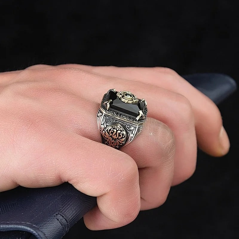 Machen Sie eine Zeitreise mit unserem türkischen Siegelring für Männer, einem zeitlosen Schmuckstück voller Charakter und historischer Anziehungskraft. Dieser Ring zelebriert das lebendige kulturelle Erbe der Türkei und verbindet traditionelle Handwerkskunst mit zeitgenössischem Flair. Die kunstvoll eingravierten Motive und Symbole strahlen eine fesselnde Aura des Geheimnisvollen aus und laden dazu ein, ihre rätselhafte Bedeutung zu ergründen.