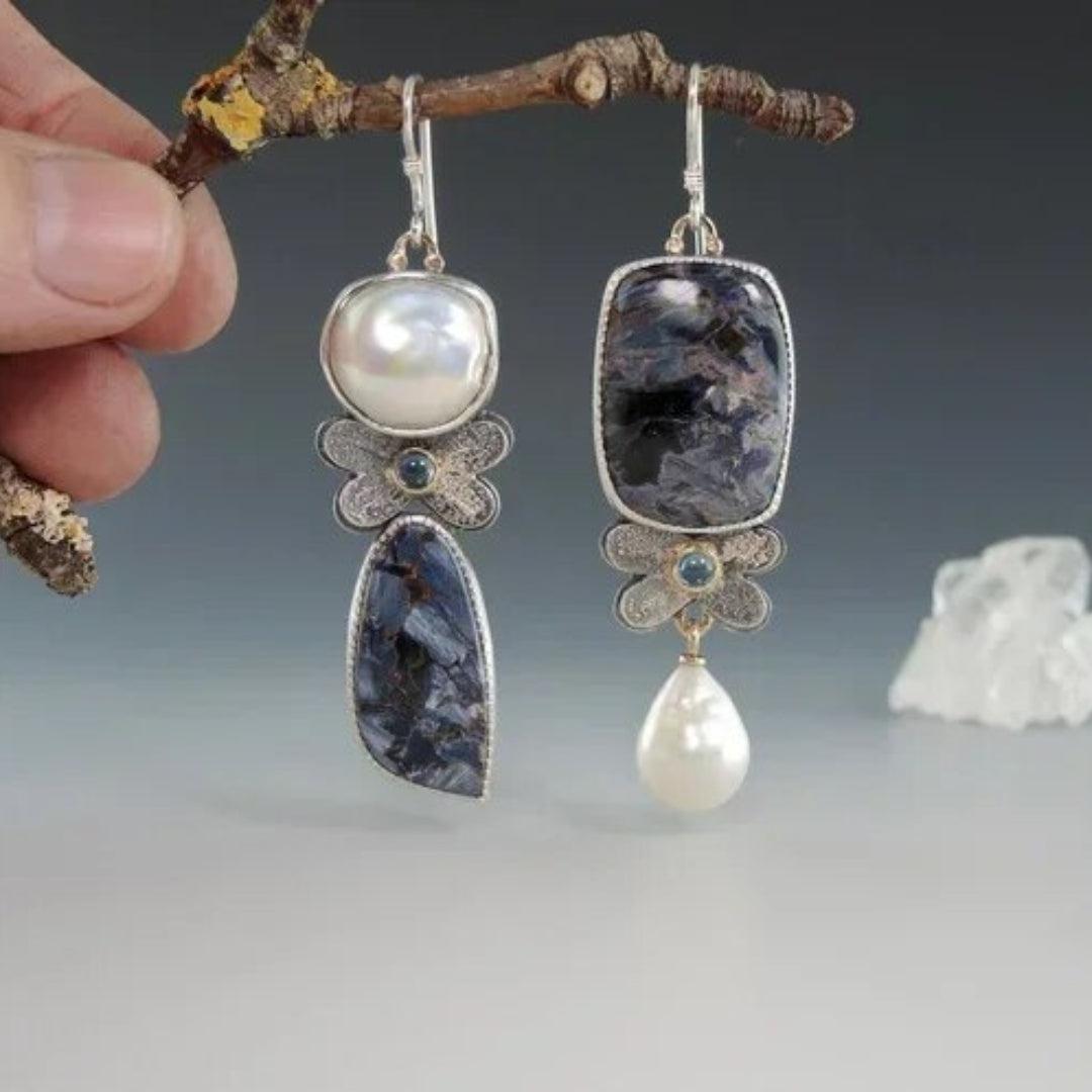 Die dunklen Ohrringe mit Vintage-Perlen verleihen jedem Look eine elegante, nostalgische Note. Die Kombination aus tiefen, dunklen Tönen und glänzenden Perlen schafft ein klassisches, zeitloses Design. Ideal für besondere Anlässe oder als charmantes Accessoire für den Alltag.