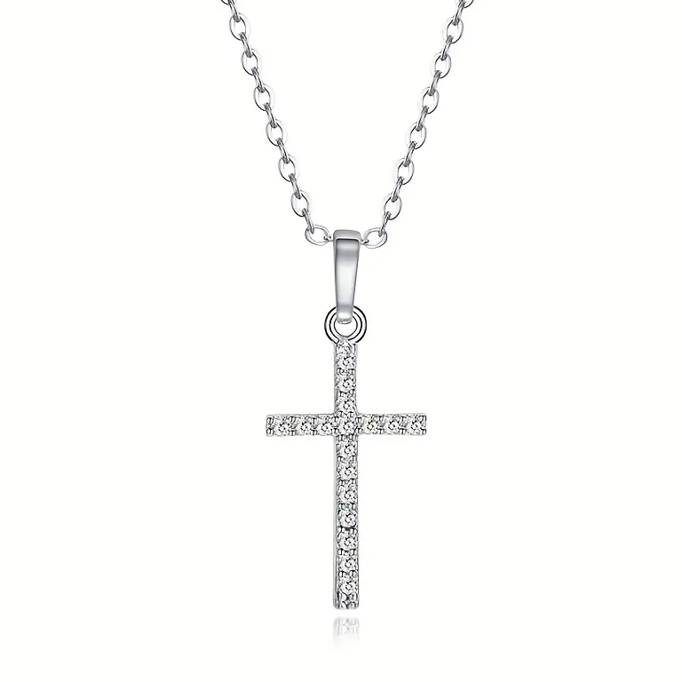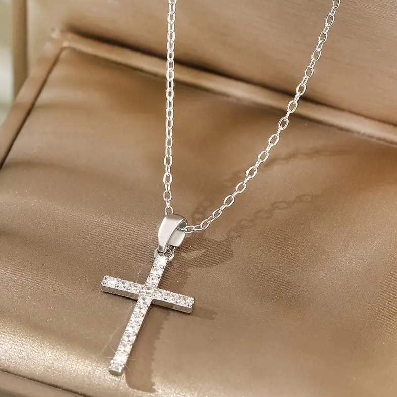 Verleihen Sie Ihrem Look einen Hauch von himmlischer Anziehungskraft und lassen Sie Ihren Glauben mit unserer exquisiten Crystal Cross Halskette hell erstrahlen. Dieser atemberaubende Anhänger zeigt ein strahlendes, kristallbesetztes Jesus-Kreuz, das an einer zarten Kette hängt und einen fesselnden Blickpunkt bildet, der Anmut und Raffinesse ausstrahlt. Ob als tägliche Erinnerung an Ihren Glauben oder als Statement-Stück für besondere Anlässe, diese Halskette verbindet mühelos Mode mit Glauben und verleiht jedem Ensemble einen Hauch von Eleganz.