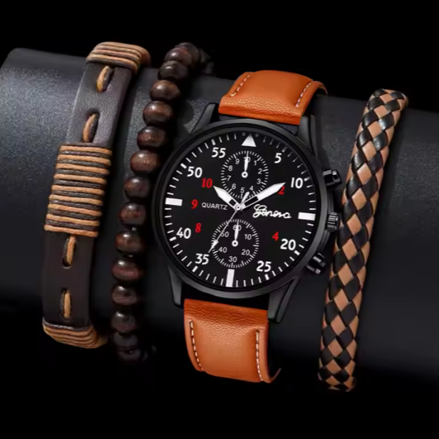 Elegante herrenuhr aus braunem leder
