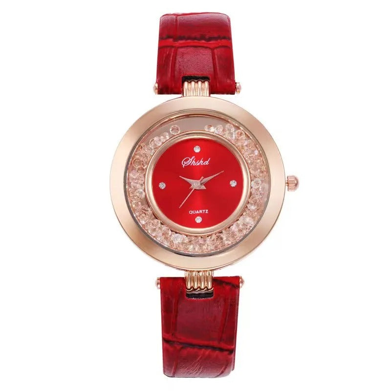 Wir präsentieren die Erica - Quarzuhr mit Lederarmband - ein Symbol für Eleganz und Raffinesse. Diese exquisite Damenuhr strahlt mit ihrem aufwendigen Design und der Liebe zum Detail Luxus aus und ist das perfekte Accessoire für anspruchsvolle Frauen.