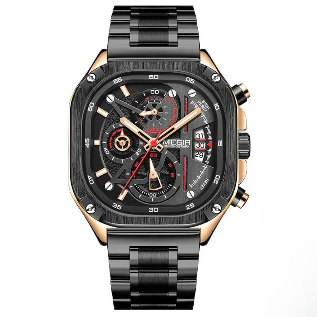 Erleben Sie die Verbindung von Robustheit und Präzision mit der Esko Military Sport Quarzuhr für Männer. Diese robuste Uhr ist dafür ausgelegt, den Strapazen von Outdoor-Abenteuern standzuhalten und verfügt über eine langlebige Bauweise sowie ein präzises Quarzwerk.
