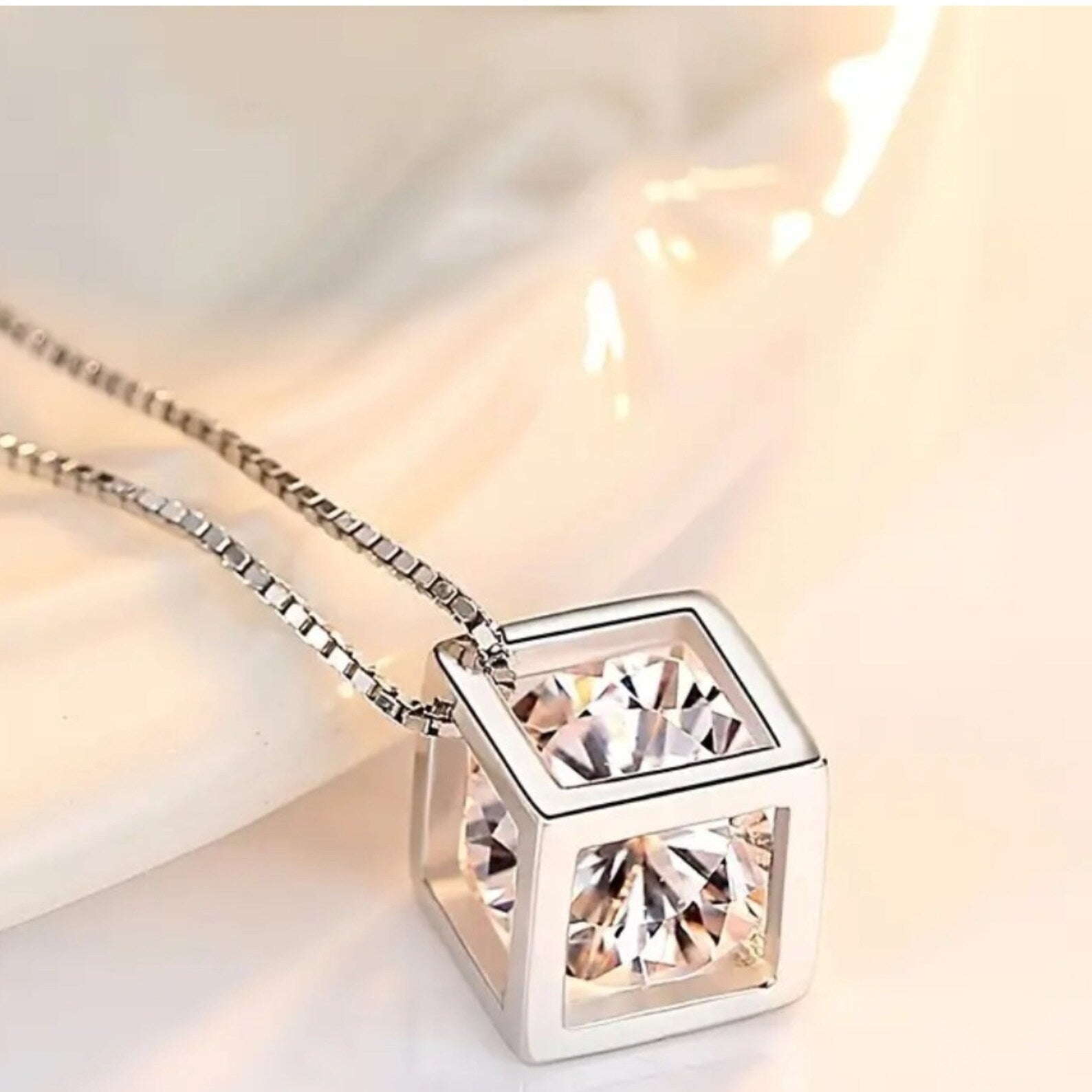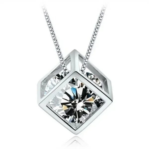 Sehen Sie unsere faszinierende Funkelnde Kristall-Würfel-Halskette - ein Schmuckwunder, das klassischen Charme mit moderner Anmut verbindet. Jede Facette des Kristallwürfels spiegelt die Ausstrahlung Ihrer einzigartigen Liebesgeschichte wider und zaubert ein faszinierendes Kaleidoskop von Farbtönen, wenn sie vom Licht berührt wird. Eingebettet in einen Würfelanhänger aus Sterlingsilber bilden sorgfältig ausgewählte Kristalle ein atemberaubendes Ensemble und sorgen für ein Accessoire, das jeden Blick mit seiner unvergleichlichen Schönheit fesselt.