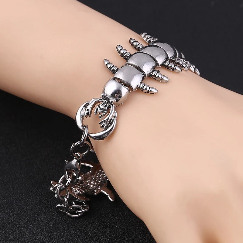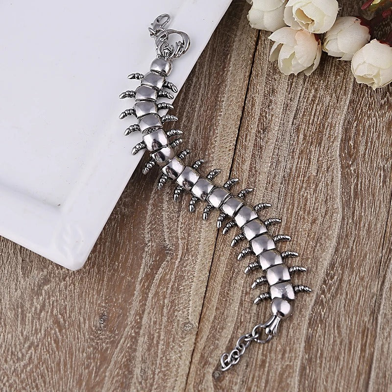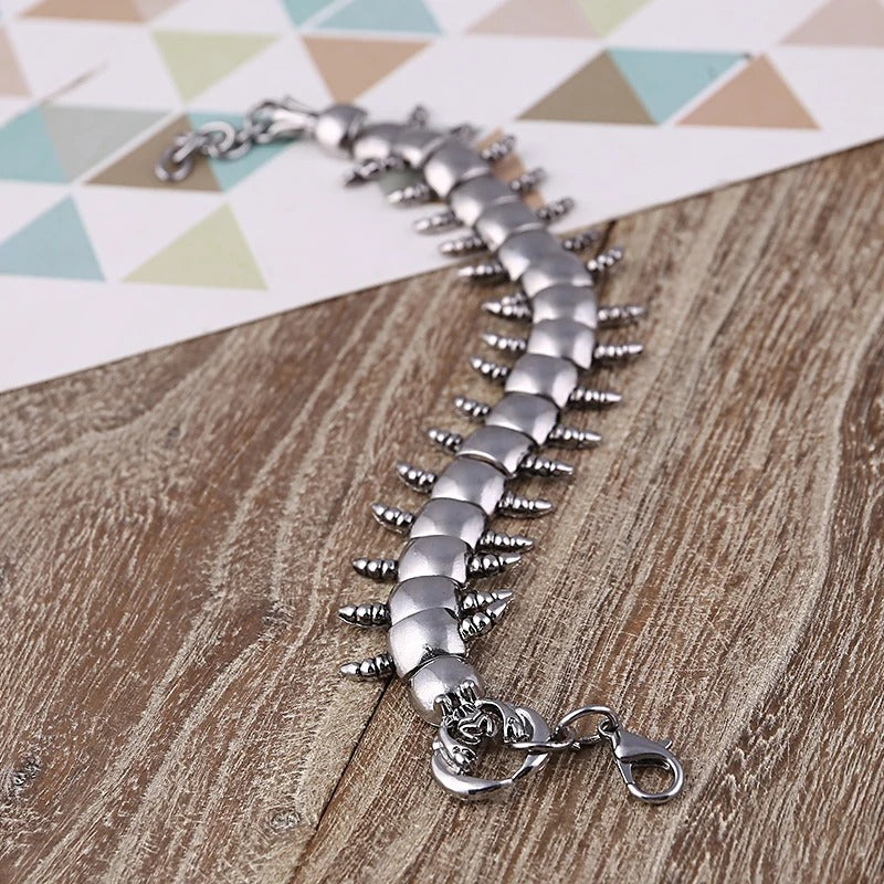 Unser Punk-Armband aus Tausendfüßler-Stahl ist eine Mischung aus Robustheit und Raffinesse. Aus hochwertigem Edelstahl gefertigt, verkörpert jedes Glied dieses Armbands die Widerstandsfähigkeit und Stärke eines Tausendfüßlers, was es über den Status eines bloßen Accessoires hinaus zu einem mutigen Statement-Piece macht. Komplizierte Details fangen die Essenz des Punk-Stils ein und strahlen eine unverwechselbare Haltung aus, die dich von der Masse abhebt.