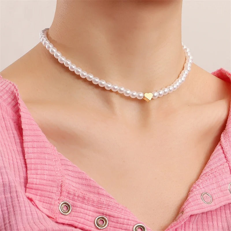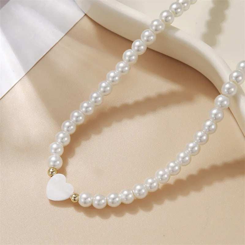 Erhöhen Sie Ihre Eleganz mit unserer Pearl Heart Affection Necklace, einer Verschmelzung von zeitlosem Charme und Herzenswärme. Der herzförmige Perlenanhänger, der mit akribischer Präzision gefertigt wurde, hängt anmutig an einem glänzenden Perlenstrang und verkörpert eine Mischung aus klassischer Eleganz und modernem Charme. Der sanfte Schimmer der Perlen fließt an Ihrem Dekolleté entlang und verleiht jedem Ensemble eine dezente, aber raffinierte Raffinesse.