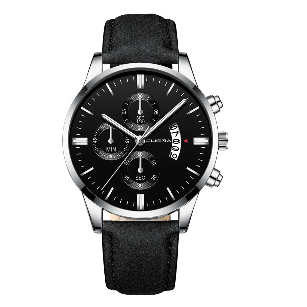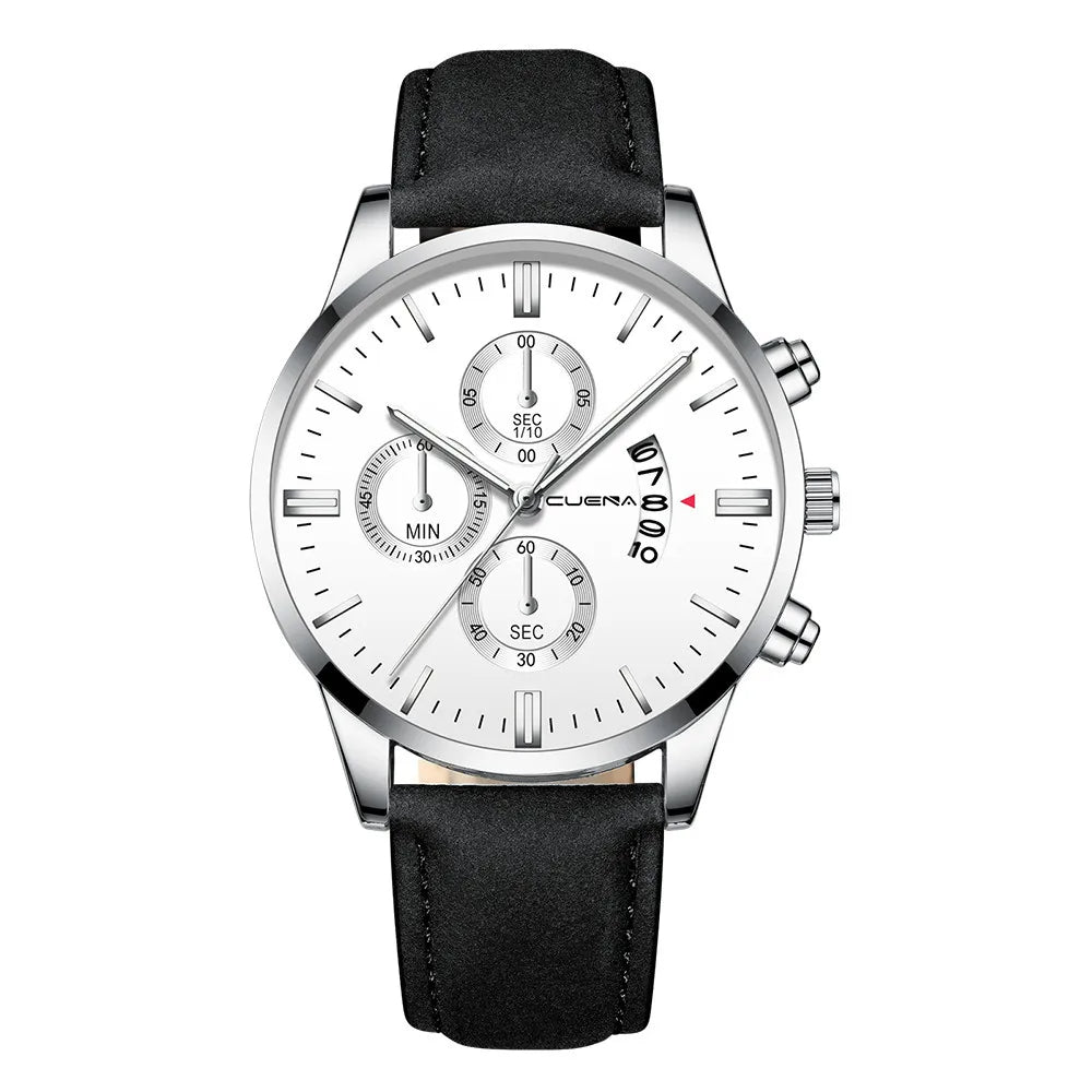 Unsere Gideon - Wildlederarmbanduhr mit rundem Zifferblatt zieht mit ihrem einzigartigen und klassischen Design die Blicke auf sich. Das Lederarmband verleiht der Uhr einen lässigen Look und macht sie zum perfekten Accessoire für alle Anlässe und Outfits. Setzen Sie ein Statement und ergänzen Sie jedes Outfit mit dieser 40 mm Uhr.