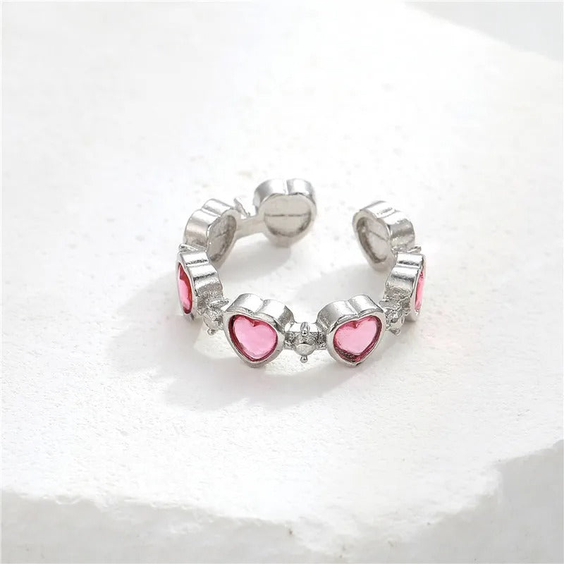 Lassen Sie sich verzaubern von Liebe und Stil mit unseren Exquisite Herzringe, die für Raffinesse und Charme stehen. Entdecken Sie die Faszination der unregelmäßigen Herzform, deren Asymmetrie wahre Einzigartigkeit und Individualität verkörpert. Zarte rosafarbene Kristalle erwecken Gefühle von Zärtlichkeit und Zuneigung, während das von der Vergangenheit inspirierte Design einen Hauch von Nostalgie und Verführung versprüht.