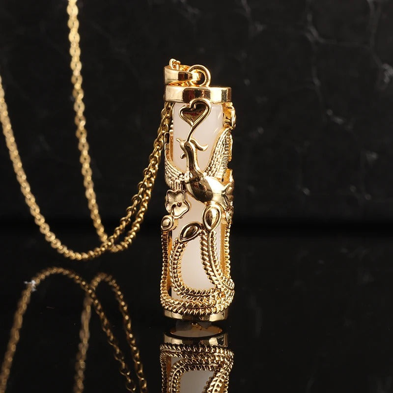 Erleben Sie die bezaubernde Anziehungskraft des Phönix und lassen Sie diesen Anhänger zu einem Symbol für Ihre einzigartige Reise und Ihren Stil werden. Der mit viel Liebe zum Detail gefertigte Anhänger zeigt aufwendige Goldintarsien, die jedem Ensemble einen Hauch von Opulenz verleihen. Sein retro-inspiriertes Design strahlt Charme und Raffinesse aus und macht ihn zum perfekten Accessoire sowohl für zwanglose Ausflüge als auch für formelle Anlässe. Lassen Sie sich von der zeitlosen Eleganz dieses Anhängers verzaubern und werten Sie Ihren Look mit seiner fesselnden Schönheit und Symbolik auf, die Ihre Individualität und Ihr Flair bei jedem Tragen widerspiegeln.