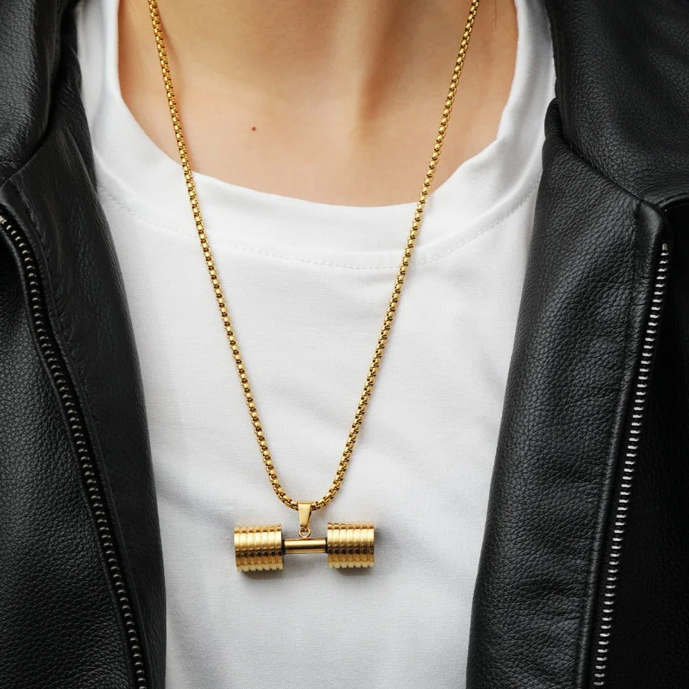 Entfalten Sie Ihr Potenzial und machen Sie sich mit diesem unverzichtbaren Accessoire auf den Weg zu einem gesünderen und glücklicheren Menschen. Wir stellen Ihnen unsere Hantel-Fitness-Halskette vor - die perfekte Kombination aus Stil und Stärke, die Sie auf Ihrer Fitnessreise begleitet! Diese Halskette wurde für den modernen Fitness-Enthusiasten entworfen und ist nicht nur ein Accessoire, sondern ein Statement. Der detailliert gearbeitete Hantel-Anhänger zeigt Ihr Engagement für einen gesunden Lebensstil und sorgt für Gesprächsstoff im und außerhalb des Fitnessstudios.