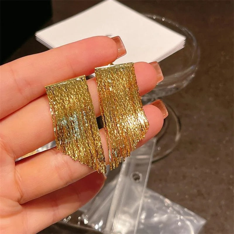 Mit unseren auffälligen Ohrringen hinterlassen Sie einen bleibenden Eindruck, ganz gleich, ob Sie in der Stadt oder zu einem besonderen Anlass erscheinen. Die kaskadenförmig angeordneten Quasten in schimmernden Gold- und Silbertönen verleihen jedem Ensemble einen Hauch von Luxus. Die länglichen Metallketten schwingen bei jeder Bewegung elegant mit, ziehen die Blicke auf sich und sorgen dafür, dass Sie auf Schritt und Tritt im Mittelpunkt der Bewunderung stehen.