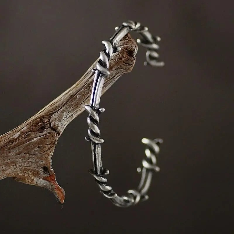 Setzen Sie ein mutiges Statement und bringen Sie Ihre Individualität mit unserem Stacheldrahtarmband zum Ausdruck. Dieses auffällige Accessoire definiert den traditionellen Stil neu, mit einem unverwechselbaren Design mit ährenartigen geometrischen Ärmeln, die sich um Ihr Handgelenk wickeln und furchtlose Mode ausstrahlen. Die verschlungenen Details des Stacheldrahts verleihen dem Armband Authentizität und symbolisieren Rebellion und Selbstdarstellung.