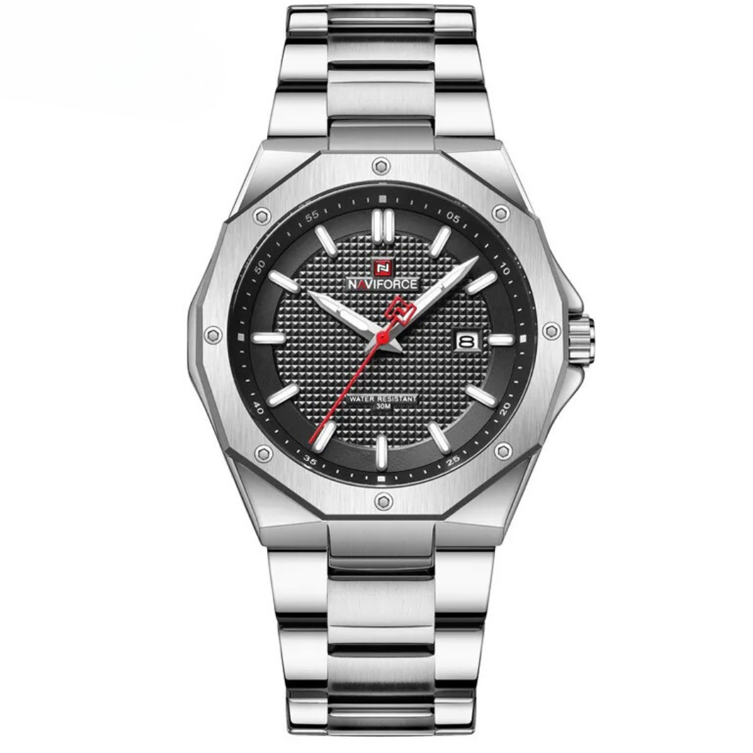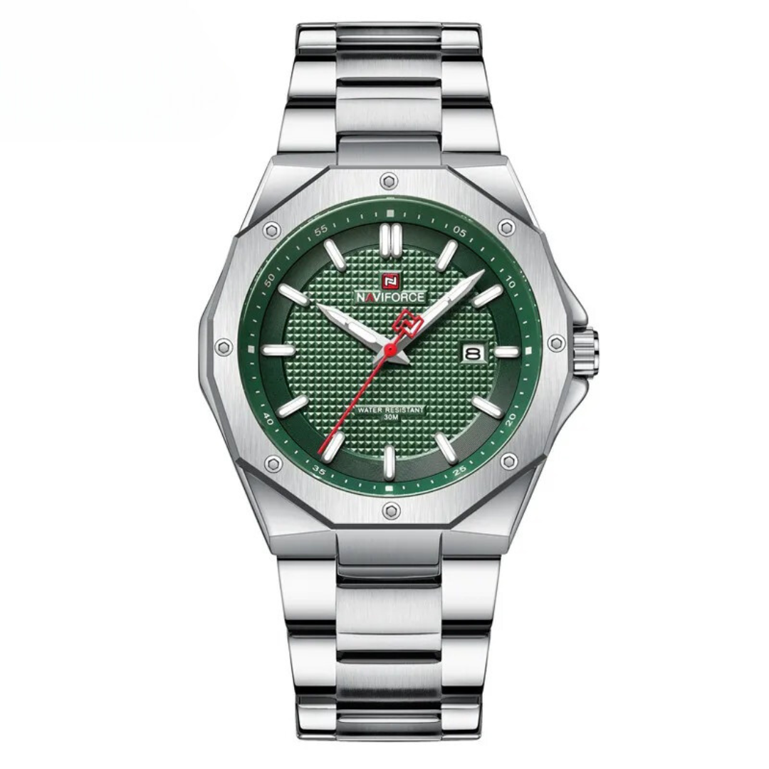 Die June Military Edelstahl Quarzuhr vereint robuste Haltbarkeit mit raffiniertem Stil. Mit ihrer stabilen Edelstahlkonstruktion und präzisen Quarzbewegung ist dieses Zeitmessgerät perfekt für sowohl lässige als auch formelle Anlässe.