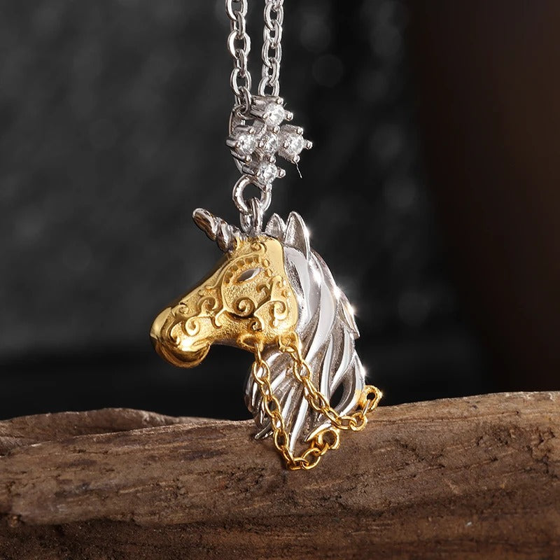Verleihen Sie Ihrem Stil die Eleganz eines Pferdes und lassen Sie Ihrem Geist freien Lauf mit unserer Halskette mit Pferdekopf-Anhänger. Dieses exquisite Stück wurde mit viel Liebe zum Detail gefertigt und fängt die Anmut und Kraft des edlen Pferdes in einem tragbaren Kunstwerk ein. Jeder Anhänger wird fachmännisch aus hochwertigen Materialien gefertigt, um Langlebigkeit und dauerhafte Schönheit zu gewährleisten. Mit ihrem eleganten und stilvollen Design lässt sich diese Halskette nahtlos vom Tag zum Abend tragen und verleiht jedem Ensemble einen Hauch von Raffinesse.