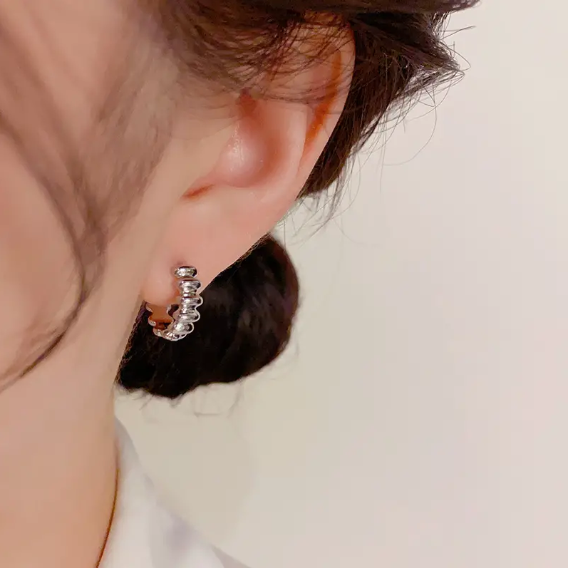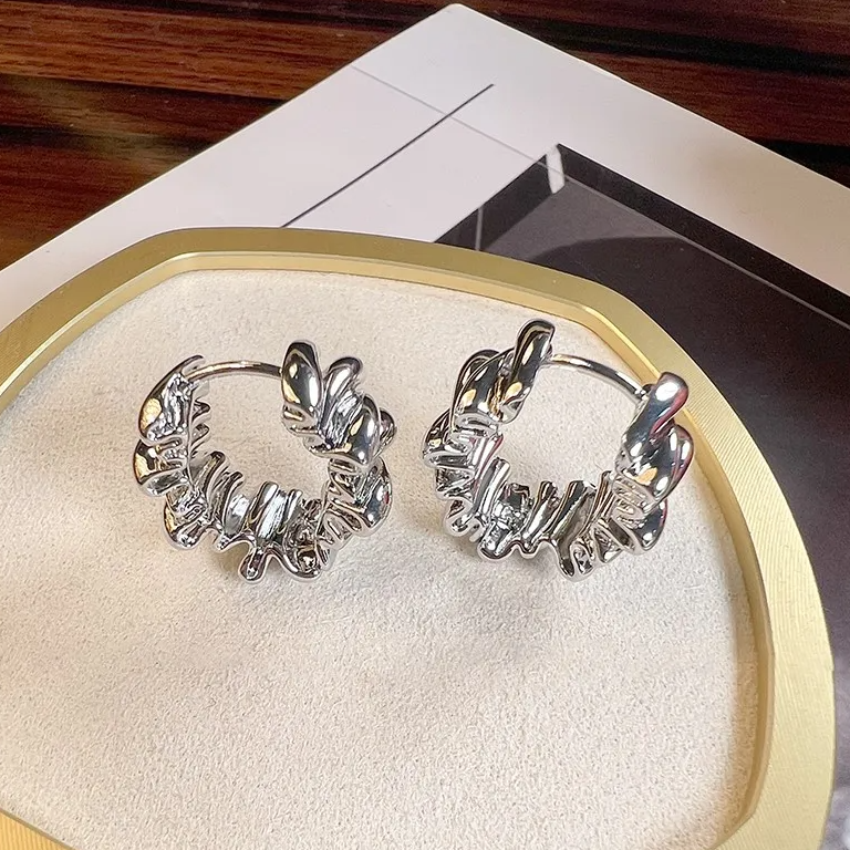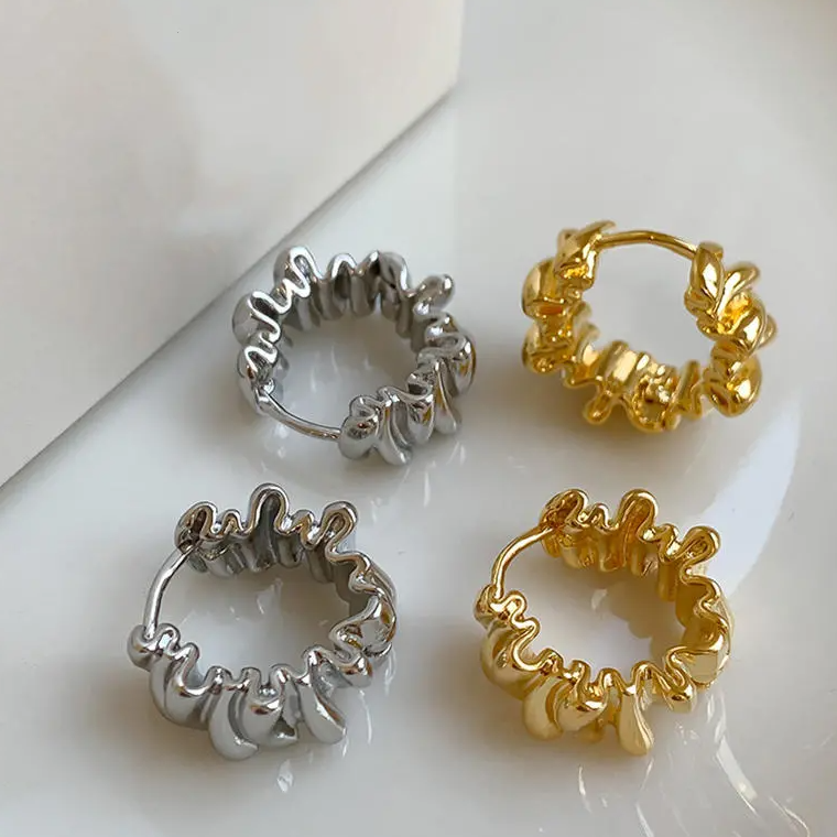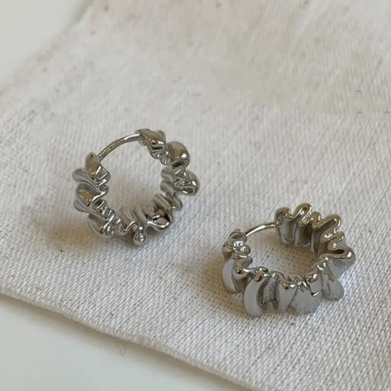 Bringen Sie Ihre Individualität zum Ausdruck und ziehen Sie die Aufmerksamkeit auf sich mit unseren Breeze Wavy Earrings. Diese mit Präzision und Leidenschaft gefertigten Ohrringe bestechen durch ihr unregelmäßiges, gefaltetes Design, das den Blick fesselt. Sie sind vielseitig genug, um jede Kleidung zu ergänzen, von leger bis formell, und garantieren, dass Sie überall einen starken Eindruck hinterlassen.