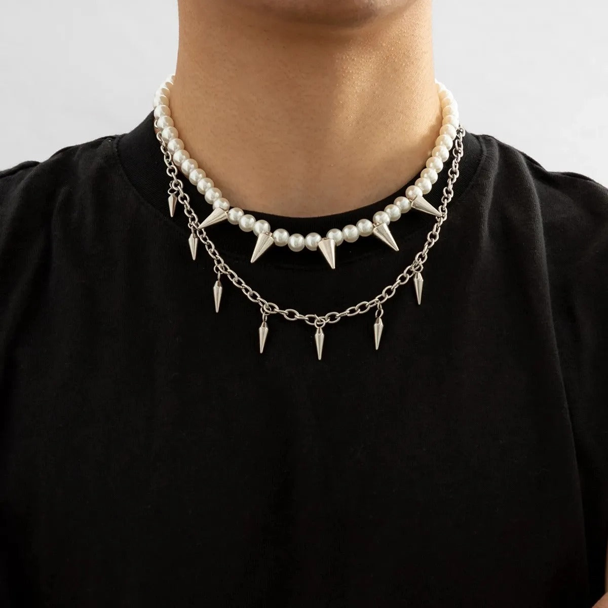 Heben Sie sich von der Masse ab und entfesseln Sie Ihr inneres Selbstvertrauen mit unserer mehrlagigen Perlenkette aus Edelstahl. Diese Halskette bietet eine dynamische Kombination aus Perlen und Edelstahlspitzen, die eine kühne und doch raffinierte Ästhetik ausstrahlt. Egal, ob Sie auf der Straße unterwegs sind oder an einem besonderen Event teilnehmen, diese Halskette wird Ihren einzigartigen Sinn für Stil mühelos ergänzen.