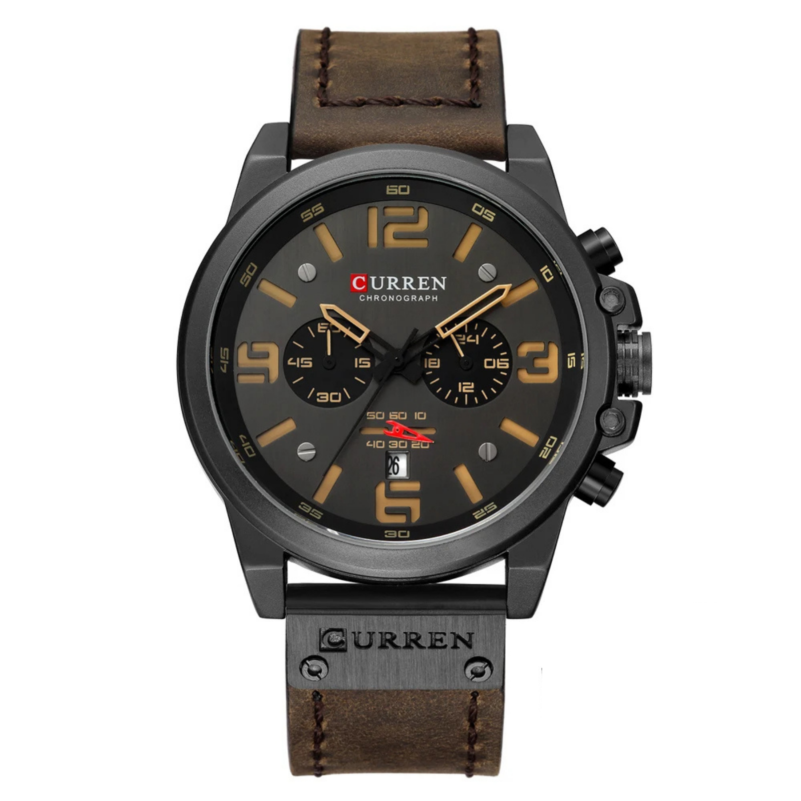 Unsere luxuriöse Lederuhr Matthias zieht mit ihrem einzigartigen und klassischen Design alle Blicke auf sich. Das Lederarmband verleiht der Uhr einen lässigen Look und macht sie zum perfekten Accessoire für alle Gelegenheiten und Outfits. Setzen Sie ein Statement und ergänzen Sie jedes Outfit mit dieser 46 mm Uhr.