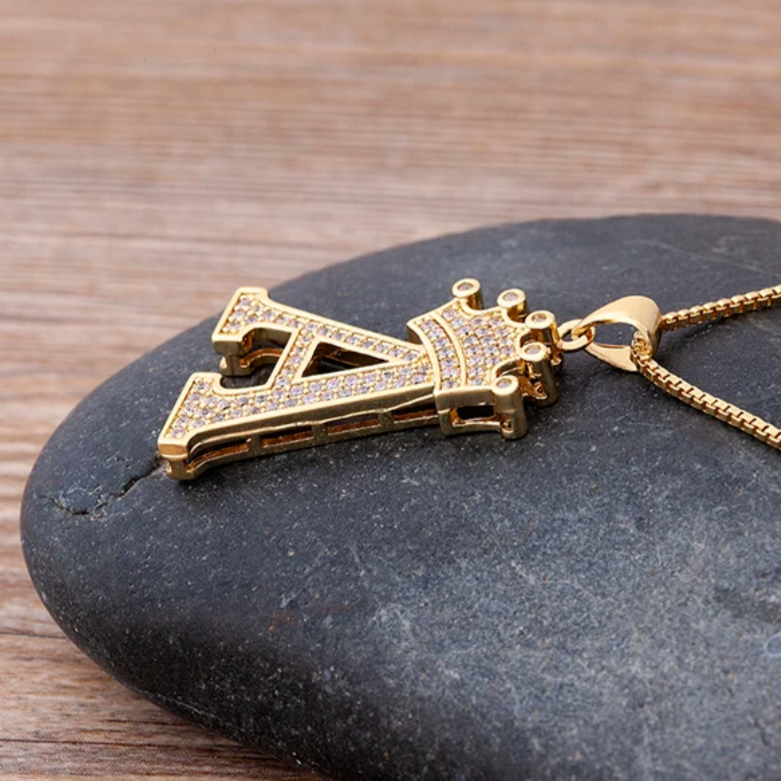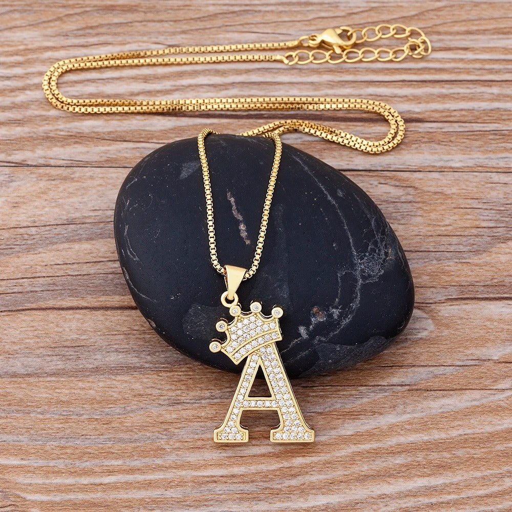 Tauchen Sie ein in die Welt der königlichen Eleganz mit unserer Alphabet-Anhänger-Halskette. Jeder Anhänger ist mit schillernden Zirkonsteinen geschmückt, die in ein majestätisches Kronenmotiv eingefasst sind. Erhöhen Sie Ihren Stil und hinterlassen Sie einen bleibenden Eindruck mit Ihren Initialen, die elegant in einer luxuriösen Kupferfassung präsentiert werden.