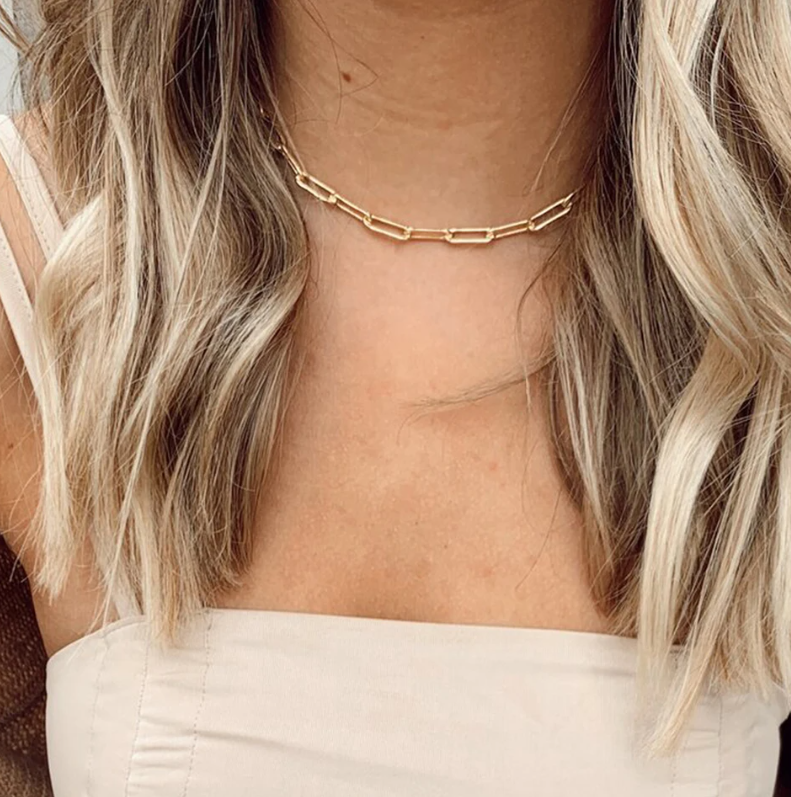 Steigern Sie Ihren Auftritt mit einem Statement, das Stil und Raffinesse ausstrahlt. Lassen Sie sich von der Vielseitigkeit und Anziehungskraft unserer minimalistischen Büroklammer-Halskette inspirieren. Diese für die moderne Frau geschneiderte Halskette unterstreicht jedes Outfit mit einem Hauch von schlichter Eleganz und lässt sich mühelos von der Freizeit bis hin zu formellen Anlässen tragen. Die schlanke und robuste Konstruktion aus Edelstahl garantiert Langlebigkeit und gibt Ihnen die Sicherheit, dieses zeitlose Stück jahrelang zu tragen.