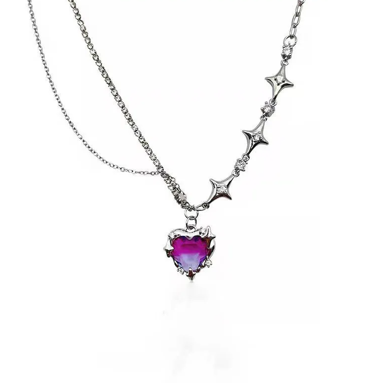Die Valeria Heart Necklace ist ein atemberaubendes Schmuckstück, das Ihr Dekolleté mit Eleganz und Selbstbewusstsein schmückt. Mit einer anpassbaren Schlüsselbeinkette ergänzt diese Halskette mühelos jedes Dekolleté. Das bezaubernde lila Kristallherz stiehlt Ihnen die Show, spiegelt die Essenz Ihres Charakters wider und bringt Ihr inneres Leuchten zum Vorschein.
