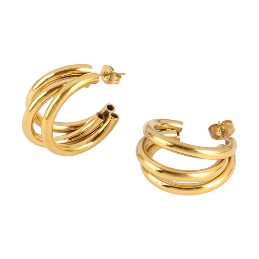 Peppen Sie Ihr Outfit mit unseren Zeitlose Hoop-Ohrringe auf. Sie verkörpern eine makellose Mischung aus Handwerkskunst, Stil und Komfort. Diese Ohrringe sind vergoldet und strahlen Raffinesse aus, die sich für jeden Anlass eignet. Setzen Sie ein Statement, das flüchtigen Trends trotzt, und investieren Sie in ein Stück, das Ihr Erscheinungsbild nahtlos aufwertet.