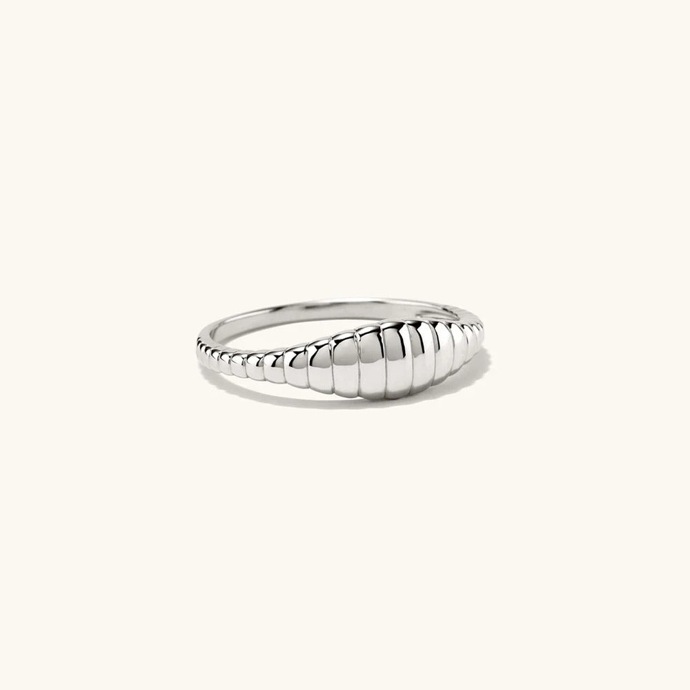 Frischen Sie Ihre Garderobe auf und definieren Sie Ihren Stil neu mit dem Tail Ring - eine Verschmelzung von Schlichtheit und Raffinesse in makelloser Harmonie. Sein schlankes Profil sorgt für Komfort, während das subtile Textur-Detail einen Hauch von Raffinesse und persönlichem Flair verleiht. Der aus erstklassigen Materialien und mit tadelloser Handwerkskunst gefertigte Ring ist nicht nur ein Accessoire, sondern auch ein Ausdruck Ihres unverwechselbaren Modebewusstseins.
