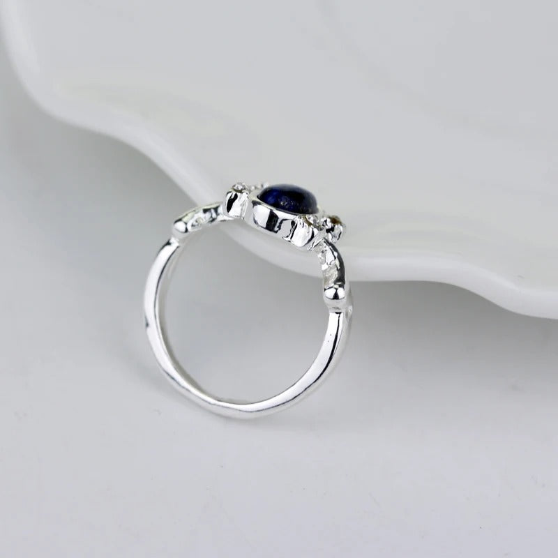 Lassen Sie sich vom Vintage-Glamour verzaubern und setzen Sie mit unserem Kristallring ein zeitloses Statement. Jedes Detail erzählt eine Geschichte von Eleganz und Raffinesse, die die Essenz einer vergangenen Ära heraufbeschwört und dennoch perfekt für die moderne Fashionista geeignet ist. Der bezaubernde blaue Lapis-Edelstein, eingebettet in ein Bett aus schimmernden Kristallen, strahlt eine geheimnisvolle Aura aus und verleiht jedem Ensemble einen Hauch von Faszination. Lassen Sie Ihre einzigartige Individualität durchscheinen, wenn Sie sich mit diesem fesselnden Kunstwerk schmücken. Erleben Sie den Charme vergangener Zeiten mit einem Hauch von modernem Flair - entdecken Sie ihn noch heute.